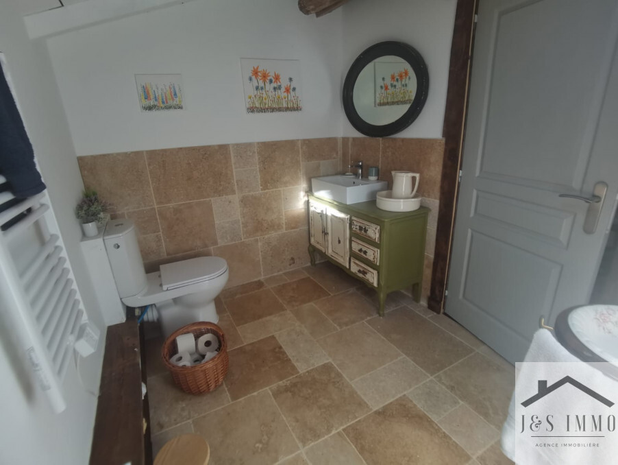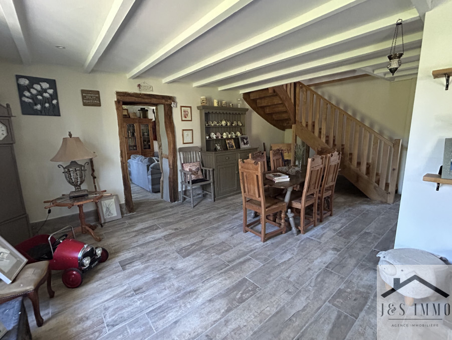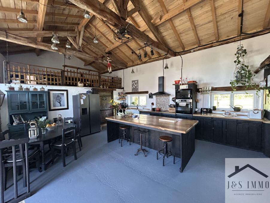Elle vous offre une maison de 220m² habitable avec au rez-de-chaussée : Entrée dans séjour spacieux avec poêle à bois, Salon avec poêle à bois, Cuisine aménagée avec poêle à bois, Buanderie et WC - A l'étage : Palier desservant 3 chambres dont une avec salle de bains, Salle d'eau avec WC