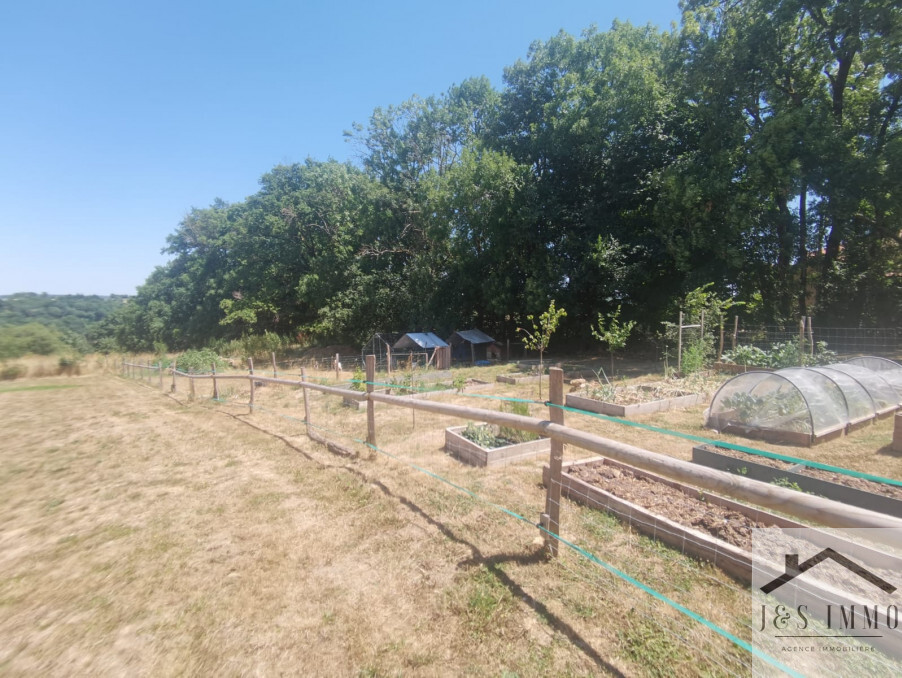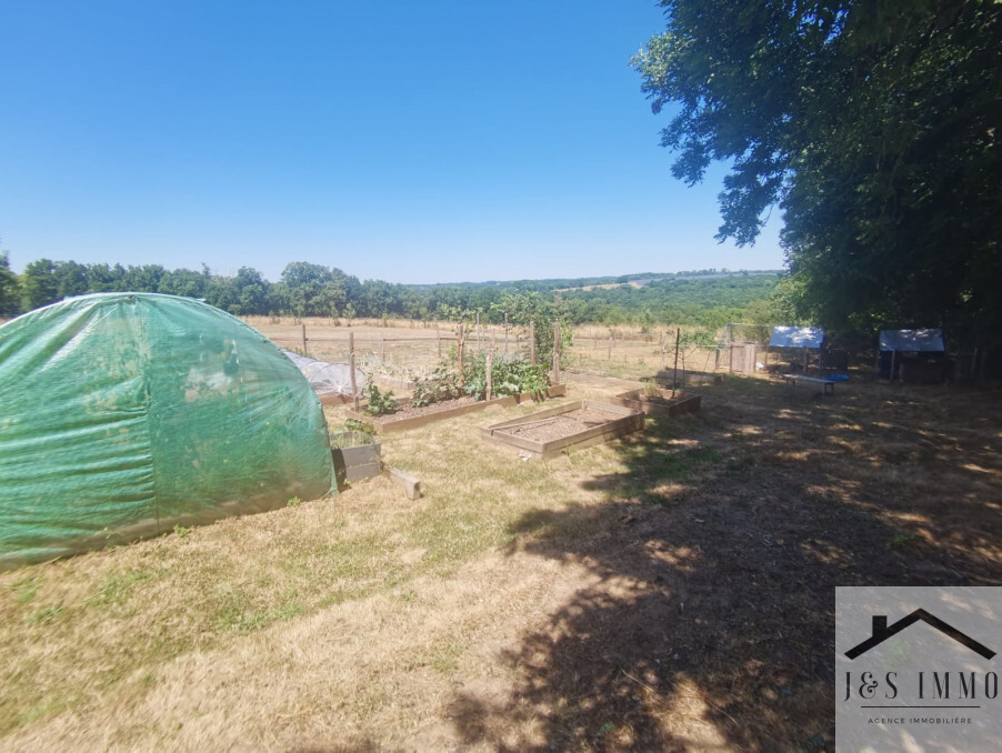 A l'extérieur : Beau jardin de 9000m² avec une belle vue dégagée sur la campagne - Deux granges à rénover et hangar -