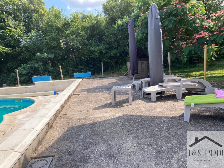 A l'extérieur : Dépendances attenantes à la maison (atelier, débarras, cave) et grange attenante - 2nd grange ouverte en face de la maison - Piscine avec terrasse couverte - Agréable terrain de 3500m² avec arbres fruitiers