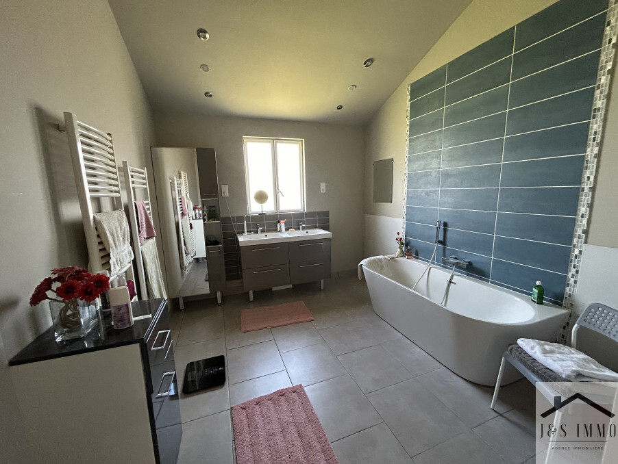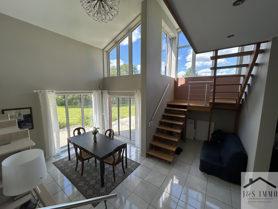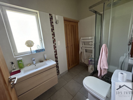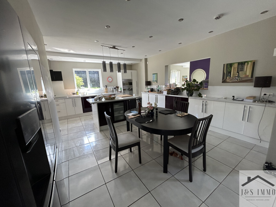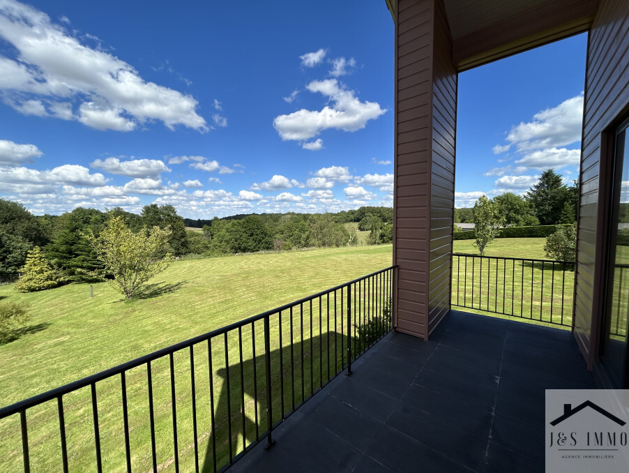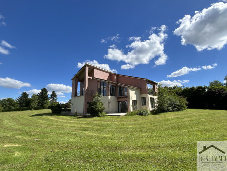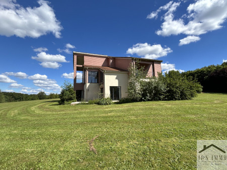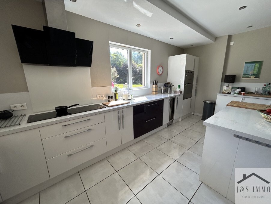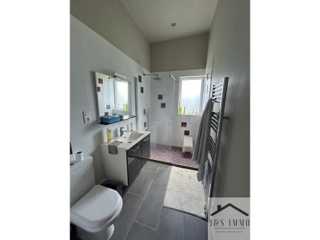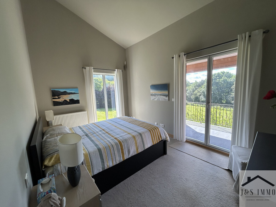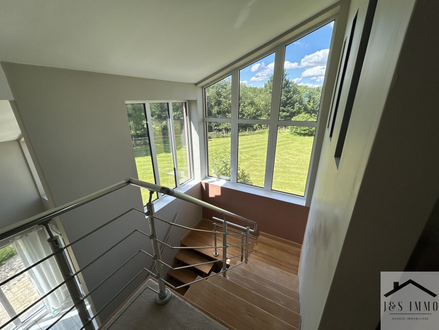 Cette maison d'architecte lumineuse avec de très jolies vues sur la campagne environnante, sur 230m² habitables, vous offre une cuisine équipée avec coin repas, grande buanderie, salle à manger avec accès terrasse, salon, chambre avec salle d'eau et WC - A l'étage: salon avec accès terrasse, 2 chambres avec salle d'eau et WC.