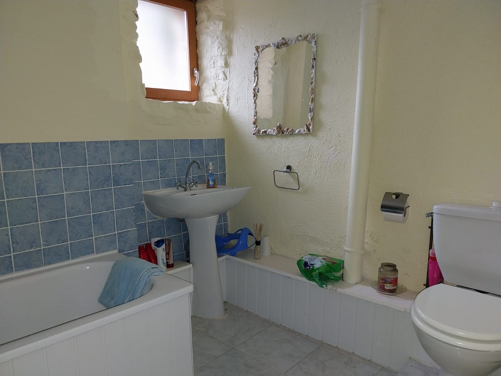 Toiture avec tuiles mécaniques ; double vitrage; quelques petits fenêtres en simple vitrage à remplacer; aucun chauffage central; poêle à bois ; besoin de travaux au niveau du plafond : dans une partie de la piàce de vie (suite à une visite d'un loir) et aussi dans Ch 3; Fosse septique non conforme mais tous les nouveaux tuyaux d'évacuation sortent dans le bon endroit.