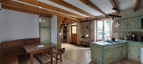 Le rez-de-chaussée offre une agréable pièce de vie composée d’une cuisine ouverte sur un salon chaleureux, agrémenté d’un poêle à bois. Un bureau, facilement transformable en chambre ou permettant d’agrandir le séjour, complète cet espace. Une salle d’eau avec WC est également à disposition.