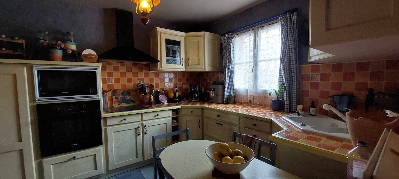 Une cuisine équipée, fonctionnelle et conviviale, prolongée par une arrière-cuisine / buanderie.