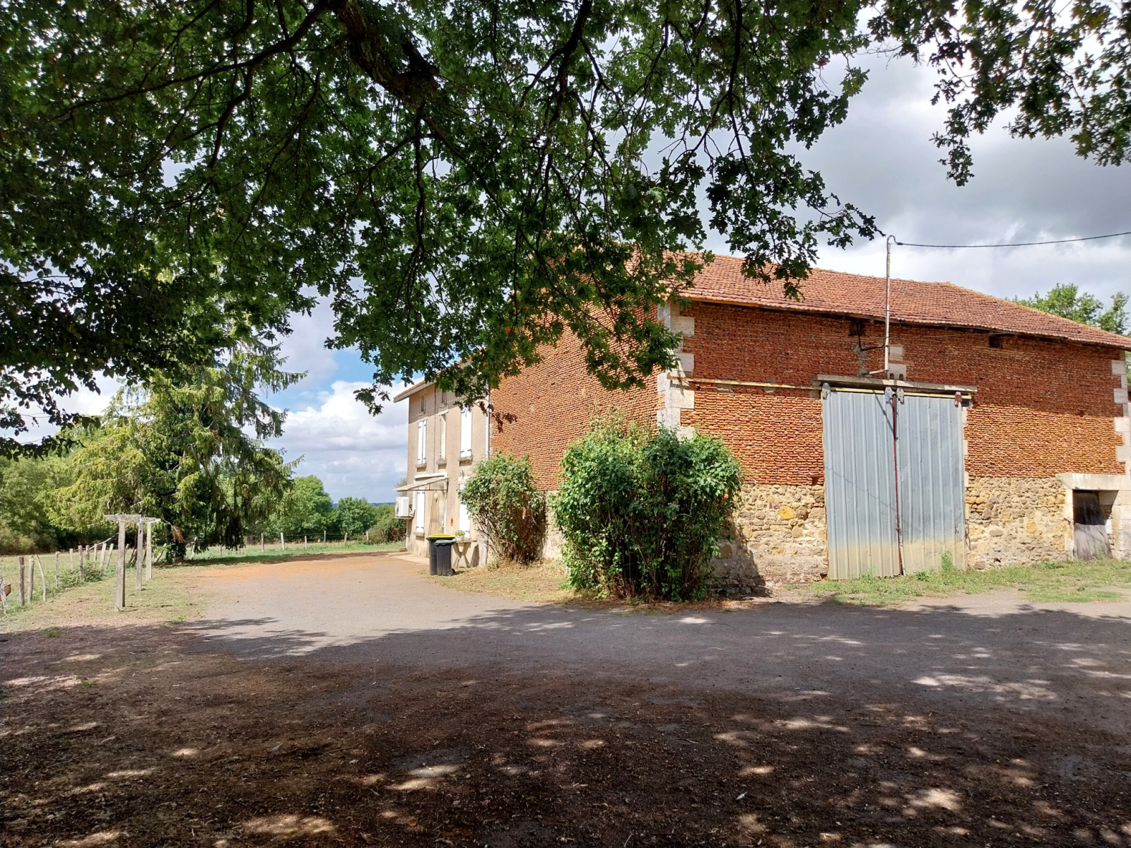 Beau potentiel pour ce corps de ferme avec ses vastes dépendances ; Maison d'env. 87m² habitable - Grange attenante et 2 Hangars sur 1,1 Hectares, au calme avec des belles vues, parfait pour un projet équestre. Située sur le secteur Terres de Haute Charente, non loin de plusieurs villages avec commerces, 10 minutes de Roumazières-Loubert et de Chasseneuil sur Bonnieure; 35 minutes d'Angoulême (TGV) et 45 minutes de Limoges. L'ancienne maison profite d'une nouvelle couverture et a bénéficié d'une rénovation au rez-de-chaussée vers 2005 ; il est possible d'aménager la grange attenante pour agrandir ; env.87m²hab comprenant : RDC : Petite entrée (3.6m²~) avec escalier clos ; Cuisine simple/SaM (15.2m²~), carrelé, cuisinière a bois, évier ; Chambre 1 (14.3m²~), parquet flottant, ou peut-être un salon ; Couloir (3.3m²~), menant à la grange attenante ; SdB (6.4m²~), carrelé avec baignoire, douche, lavabo et bidet ; WC ind.(1.5m²~) ; Buanderie (6.8m²~). Au 1er : (travaux à prévoir) : Petit Palier (2.5m²~), escalier clos menant aux combles; 2 Chambres (17.5 et 16.2m²~). Nouvelle couverture 2024 ; Fosse septique (à contrôler) ; Chauffage par Pompe à chaleur réversible (env.2008), 4 unités, seules celles de CH1 et la cuisine fonctionnent car l'électricité au 1er est coupé (installation au 1er à refaire) ; installation élec. rez-de-chaussée refaite 2019; 3 fenêtres double vitrage et la porte d'entrée ; volets en PVC (2 sont cassés). Energie : GES : Taxe Fonciere : approx 550�/annuel Dépendances : Grange attenante env.76m² au sol (inc. SdB, buanderie, couloir pour env. 23m²) avec hauteur pour un étage. Hangar att. d'env.132m²; Vaste Hangar clos d'env. 360m ² avec son appentis d'env. 54m². Terrain d'env. 1.1 Hectares (env.11156m²) ; Cours ; Pré (dispo Mai 26) ; toile nu pour votre jardin ou belle endroit pour installer vos animaux, quelques arbres, notamment l'ancien chêne qui donne de l'ombre sur la cour. Les informations sur les risques auxquels ce bien est exposé sont disponibles sur le site Géorisques : www.georisques.gouv.fr J&S IMMO - VOTRE AGENCE DE PROXIMIT� - Alison Laming - Agent Commercial - 65, Avenue de la République - 16260 CHASSENEUIL-SUR-BONNIEURE Email alison.jsimmo@gmail.com 05-45-68-05-50 BUREAU 06-26-94-80-51 PORTABLE PRIX HONORAIRES D'AGENCE INCLUS : 117 700 euros dt Forfait 7.00% d'honoraires - à la charge de l'acquéreur - PRIX NET VENDEUR: 110 000 euros