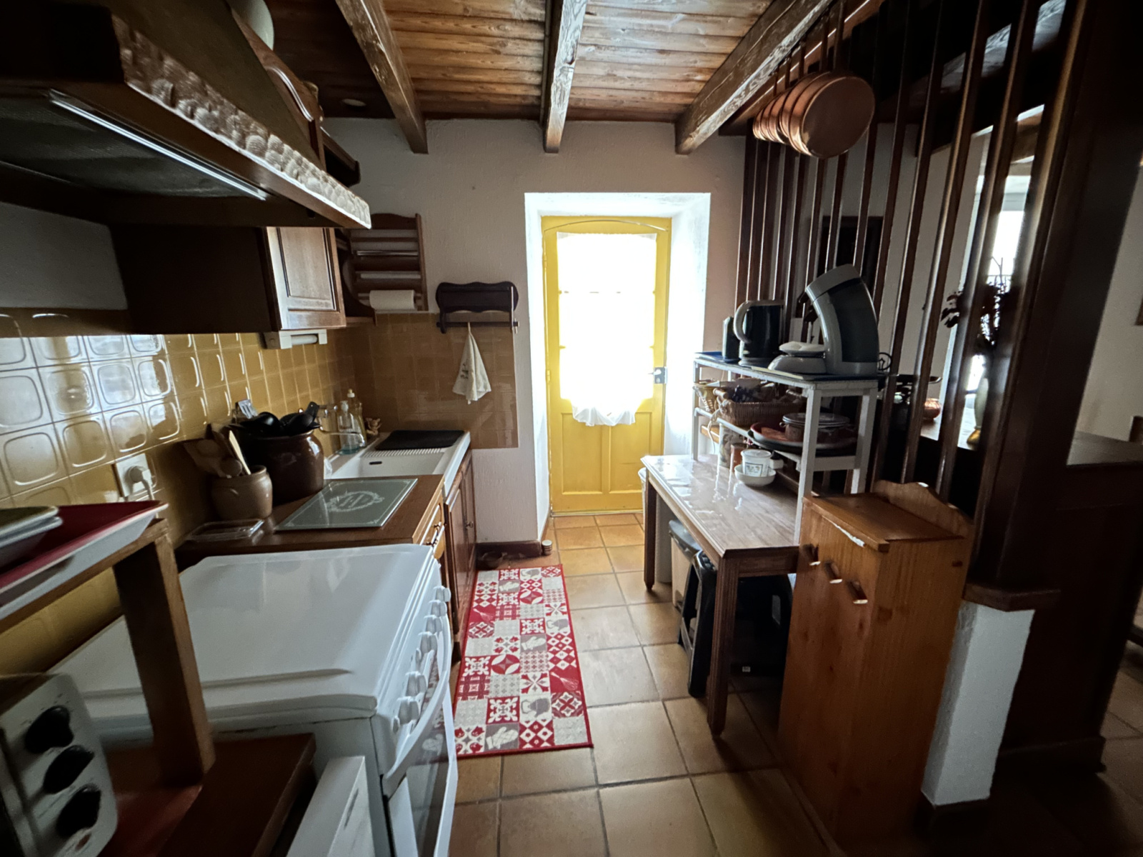 Située dans un hameau, à la campagne, cette maison -mitoyenne sur l'arrière- vous offre une entrée dans pièce de vie spacieuse avec espace cuisine, buanderie, salle d'eau et WC séparé