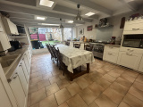 Au rez-de-chaussée : Entrée avec placards, Bureau, Pièce de vie avec poêle à bois, Cuisine aménagée avec accès terrasse, WC avec lave-mains, Cave - A l'étage : Palier desservant 5 Chambres dont 4 avec une salle d'eau privative et WC, Salle de bains avec WC, Salon à poêle à bois