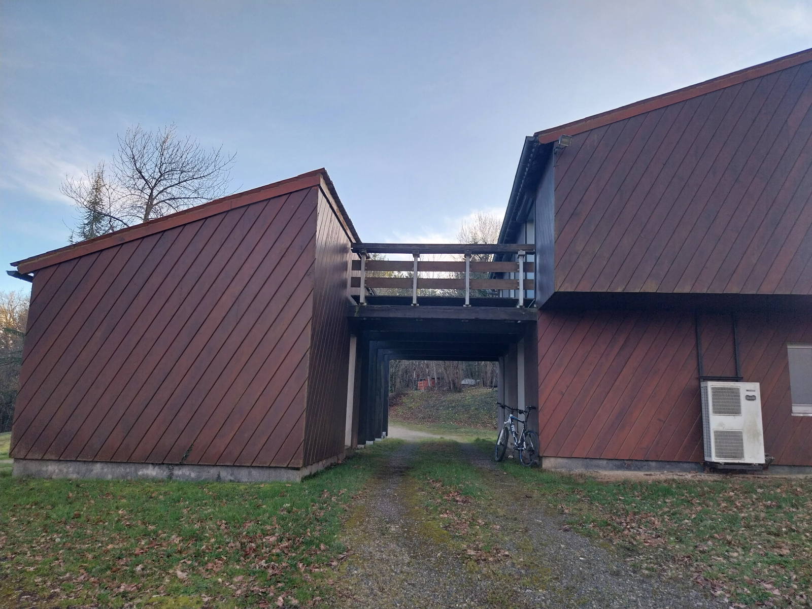 Dépendances : Quelques pas de la porte d’entrée se trouvent le magnifique Bureau avec un murvitrée donnant sur la vallée (14.3m 2 carrelé et chauffé au sol avec lavabo) ; Garage/Atelier de 49.4m2~ avechauteur ; Auvent/Abri 47.28m 2 ~; Chaufferie (24.6m 2 ~) ; le grand balcon fait aussi une terrasse ombragée ou abri voiture.
