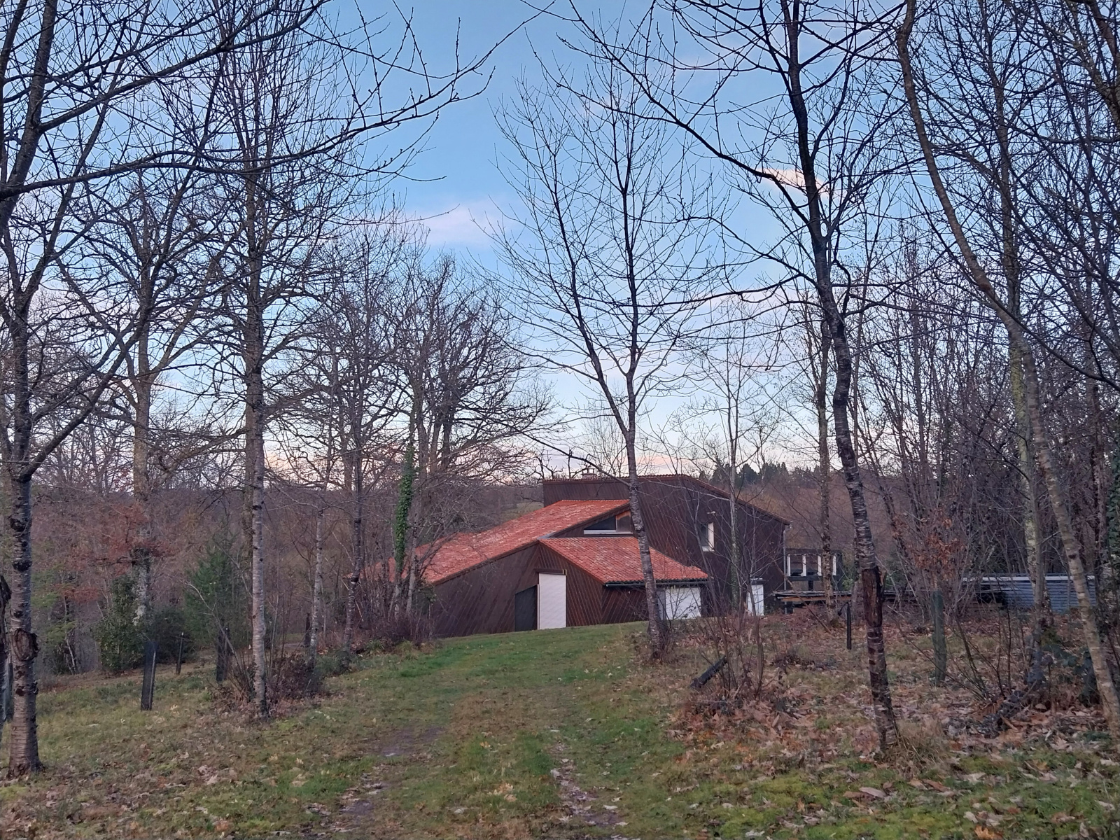 Grands espaces de vie ouverts, multi-aspect, mansardés et lumineuses, avec des vues magnifiques. Cuisine américaine; 3 Chambres ; SdB ; SdE ; 2 WCS ; grand Balcon ; Bureau ; Dépendances ; 3.4 hectares boisés avec petit étang et ruisseau. Possibilité d’acheter 2.4 Ha au même vendeur.