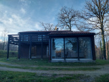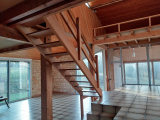More details:Situation: A 5min cycle or a 25 min walk to a lively village with a thriving community and manyamenities including, bakery, grocers, chemist, doctors, dentists, butchers, bar-restaurant, café and alittle weekly market. Close to the lakes of the Haute Charente and with 3 larger market towns withina 20min radius; 40 mins from Angouleme (TGV) and 1 hour from Limoges airport.Description: approx.185m 2 habitable space laid out as follows:Ground Floor, tiled throughout: Entrance (3.2m 2~ ) with access to WC and utility rooms, leading to animpressive open plan split-level living room of approx. 58.7m 2 with full height, mansard ceilings andspectacular picture windows to every aspect; open plan fitted kitchen with large walk-in pantry(3.6m2~); the raised south facing sitting area has an open fireplace with wood storage and a glasswall separates the living area from the garden room (33.9m 2 ~); an open staircase leads to amezzanine landing giving access to:1 st floor: laminate flooring throughout: 3 Bedrooms (12, 10 & 10.3m 2~ ) all with fitted wardrobes and access to the spacious balcony with amazing views; Bathroom (5.6m 2~ ); Shower room (3.3m 2~ ); WC.