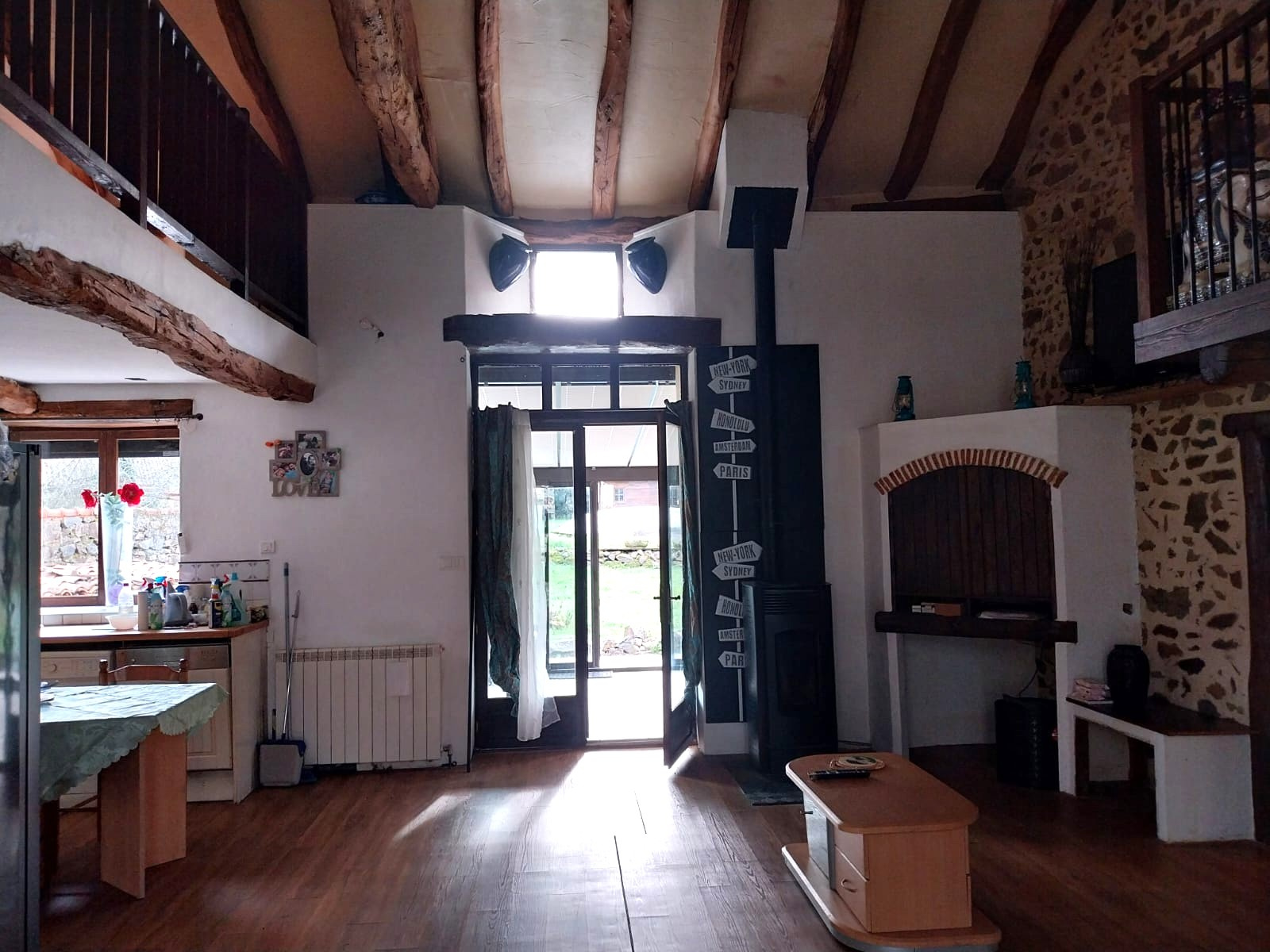 Menuiseries en double vitrage avec une partie en volets roulants - Assainissement individuel aux normes - Chauffage par poêle à granulés et chauffage central avec pompe à chaleur à réparer