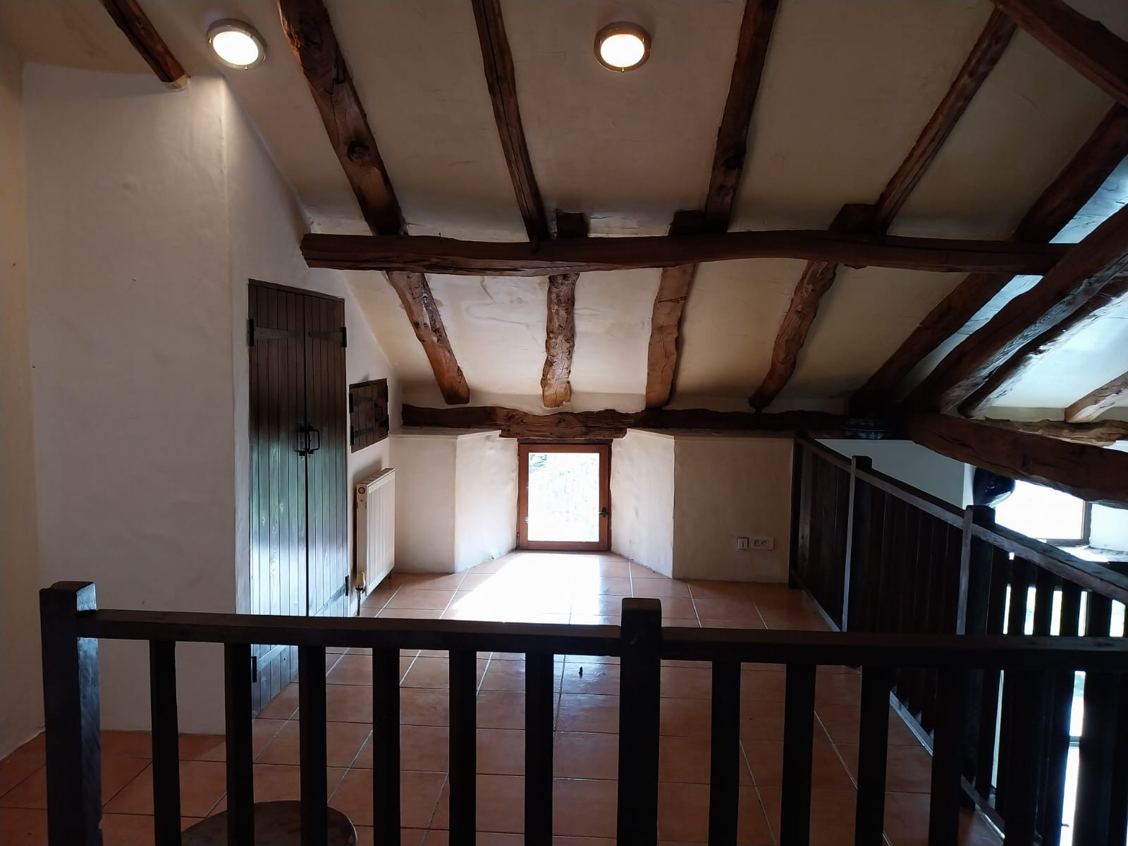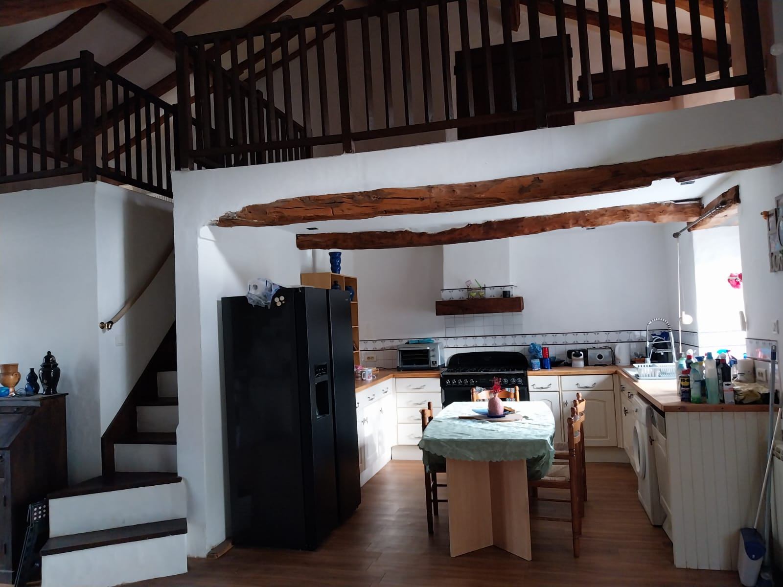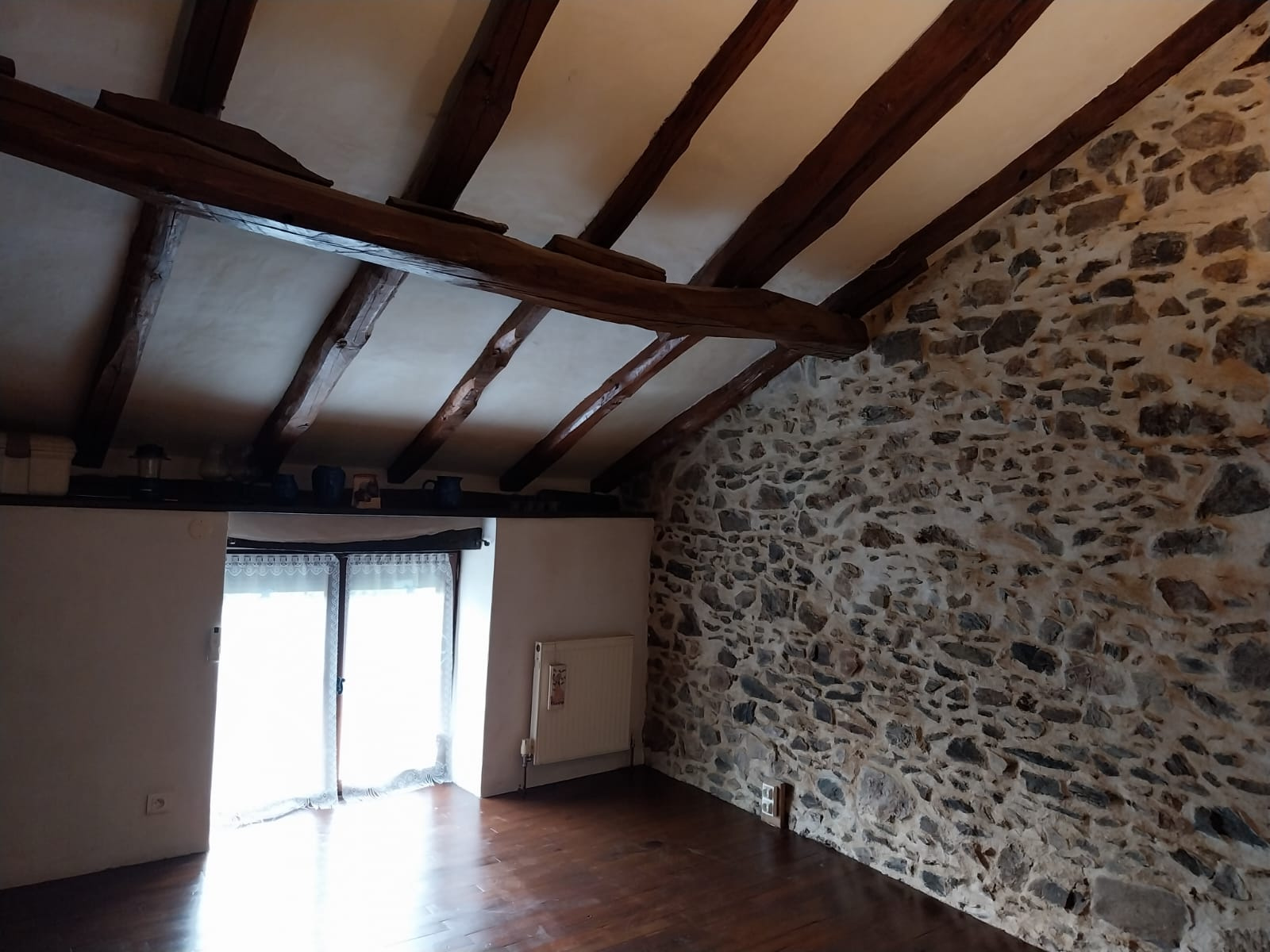 A l'étage : 1er escalier desservant une chambre avec salle d'eau et WC et 2ème escalier desservant une mezzaninne pouvant être transformée en chambre ou servir à un espace salon