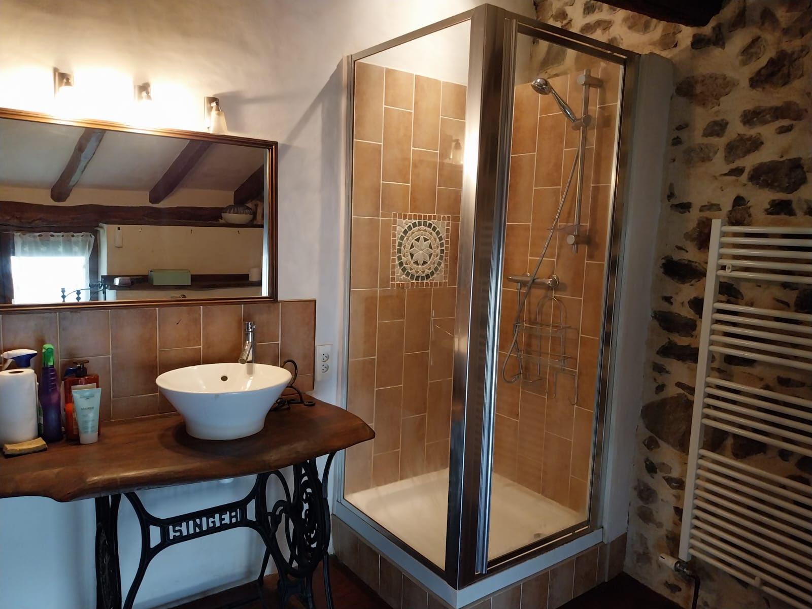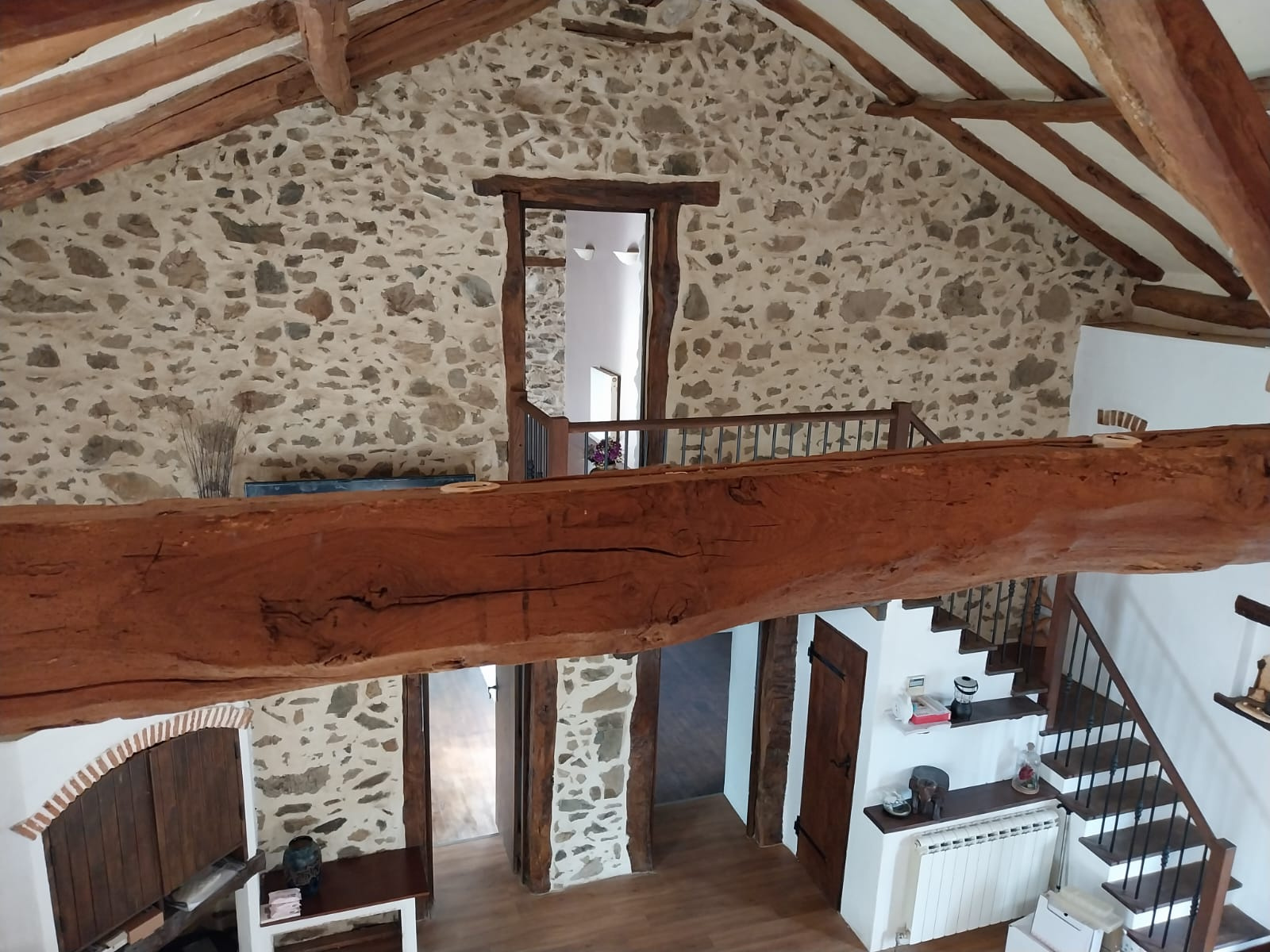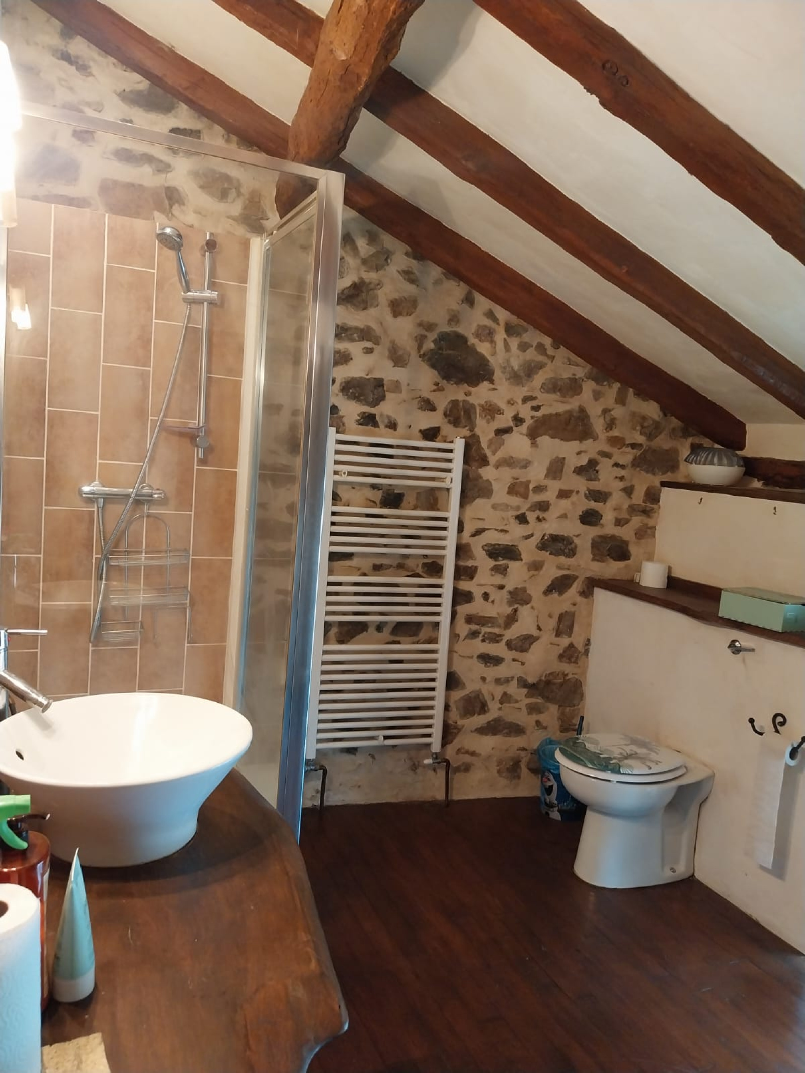 A l'étage : 1er escalier desservant une chambre avec salle d'eau et WC et 2ème escalier desservant une mezzaninne pouvant être transformée en chambre ou servir à un espace salon