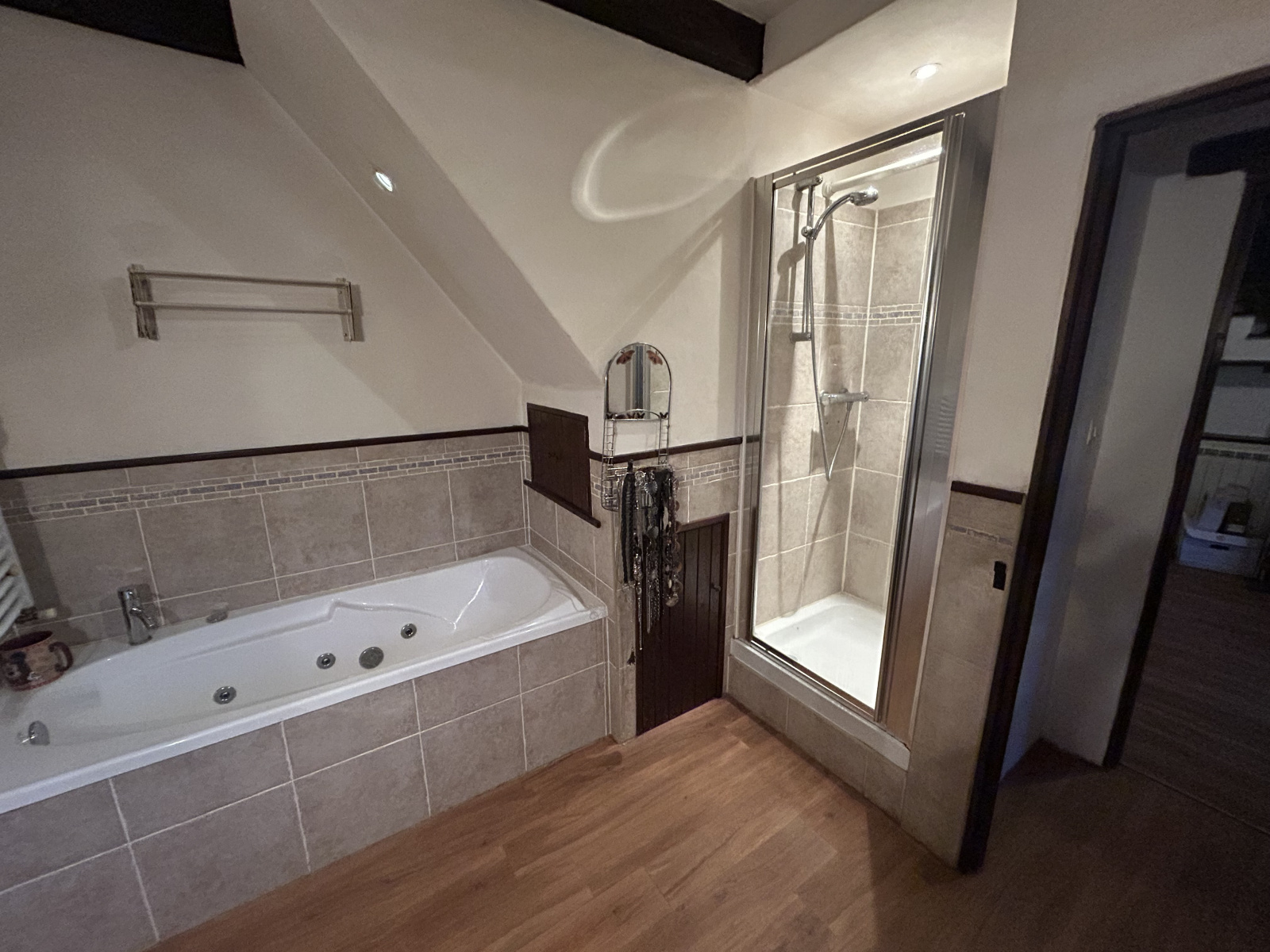 1st Floor: 1 staircase leads to the Mezzanine Gallery of approx.14m2 (larger at floor level – could convert to additional bedrooms) and the other to a lovely Bedroom (15.1m2~) with mansard ceiling & wooden flooring; Large Shower room/WC (8m2~).